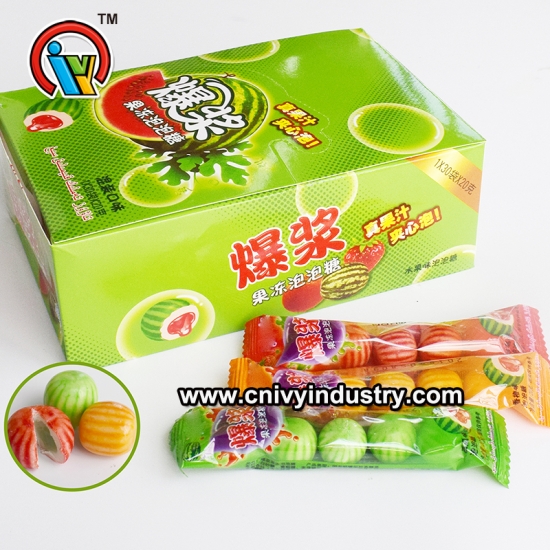 รูปร่างลูกฟรุ๊ตตี้ หมากฝรั่ง กับ Jam Filled หนึ่งการ์ตูนมี 24 กล่องหนึ่งกล่องมี 30 ชิ้น
