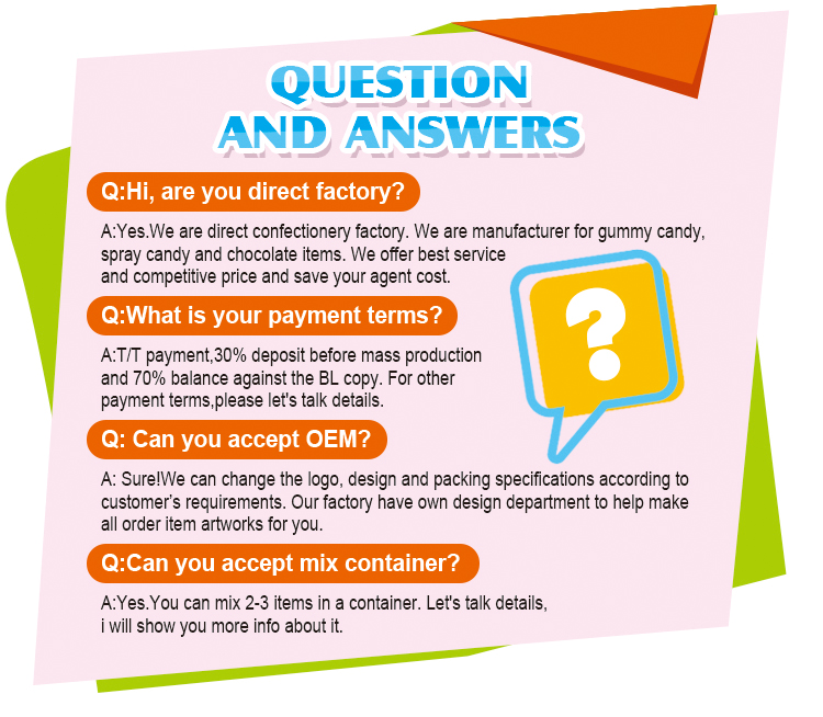1.ซัพพลายเออร์ขนมมืออาชีพมากกว่า 10 ปีพร้อมด้วยทีมงานที่มีความคิดสร้างสรรค์
